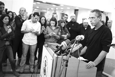 1月11日,在以色列特拉维夫附近的谢巴赫医疗中心,以色列前总理沙龙的儿子吉拉德·沙龙在新闻发布会上讲话。新华社发