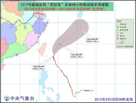 另外,今年第17号超强台风“杰拉华”的中心28日05时位于中国台湾省花莲市东南方大约310公里的西北太平洋洋面上,中心附近最大风力16级(52米/秒),中心最低气压为930百帕。预计,“杰拉华”将以每小时15公里左右的速度向偏北转东北方向移动,逐渐向日本南部一带沿海靠近,强度缓慢减弱。
