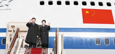 中国国家主席习近平和夫人彭丽媛首次出访俄罗斯。 新华社记者 兰红光摄