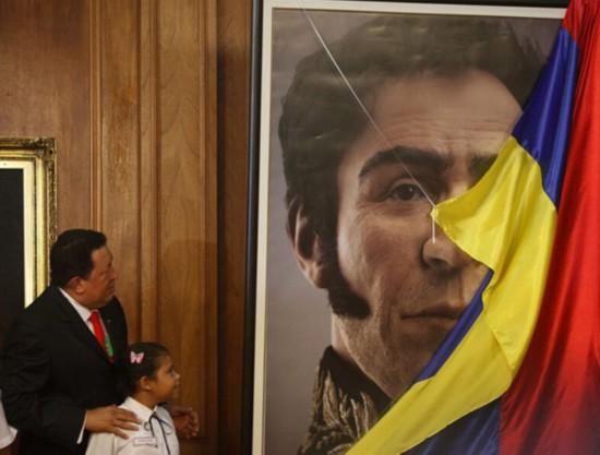 2012年7月24日,委内瑞拉民众庆祝国家英雄玻利瓦尔诞辰229周年。查韦斯为玻利瓦尔电子复原头像揭幕