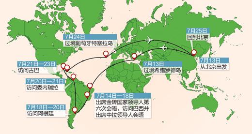 图为习近平主席拉美之行示意图。制图:张芳曼