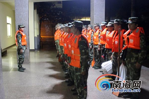 9月16日凌晨,武警海口市支队官兵快速集结赶往灾区。(特约记者杨瑞明摄)