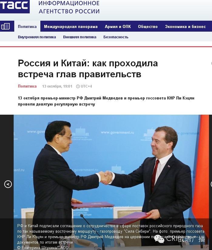 普京下令组建的“今日俄罗斯”国际新闻通讯社:对李总理访问俄罗斯的成果进行了全面梳理与介绍,其中说道,“中俄签署了将近40项合作协议,涉及能源、金融、交通、航空航天等多个领域,这显示出,中俄合作又向前跨一大步,俄罗斯向东再转一度”。