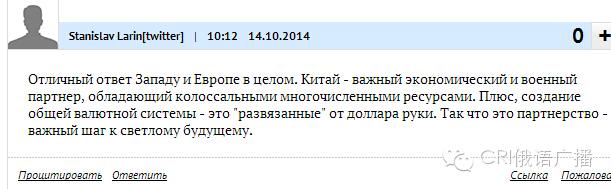 从俄罗斯网友评论来看,他们最关注的热点之一是中俄签署本币互换协议。当然,对他们而言,改善生活才是硬道理,因此,他们更期待,双边合作会给两国人民带来实实在在的好处。