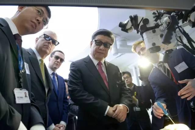 在安德鲁王子陪同下,习近平来到数据科学研究所,听取了有关运用大数据分析研究中国人口流动、“一带一路”建设对沿线国家影响、个性医疗、城市地铁管理等情况的介绍。参观哈姆林中心期间,习近平戴着3D眼镜观看医疗设备的展示。
