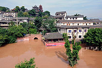 2012年8月5日,暴雨袭击济南,城区积水。在历下区万寿宫街,一名孩子带着救生圈出行,她的的家门口已经积水成“河”。【详细】