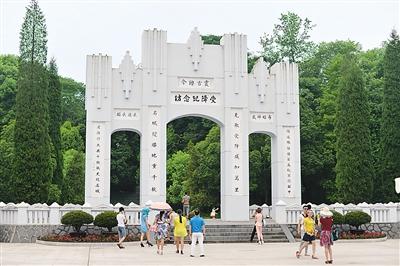 游客在芷江受降纪念坊前参观拍照。 新华社记者 白 禹摄