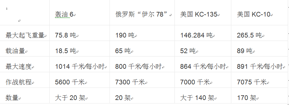 由此可见,我国轰油6空中加油机在载油量、数量、加油效率、航程方面仍有不足。我国正在发展大飞机项目,一旦成功将是加油机平台的首选。另据外电报道,中国正在与俄罗斯洽谈购买一批伊尔78加油机,如能购进,将使我空中远程作战能力更上一层楼。(晓可)