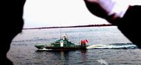 网友拍我航母平台“辽宁舰”节日期间霓虹灯闪亮装点海湾