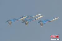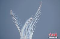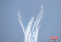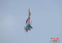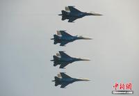中新网珠海11月12日电(陈海峰)12日下午两点整,俄罗斯勇士飞行表演队5架表演机准时启动进行飞行表演,展示了“加力盘旋”、“跃升半滚倒转”、“向上开花”、“双机对冲”等精彩动作,为观众提供了一场视觉盛宴,体现了苏27优异的机动性能。