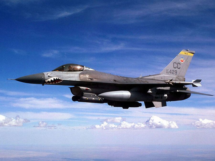 美国F-16战斗机,其使用的一体成形座舱罩技术在美国国内是顶尖的。