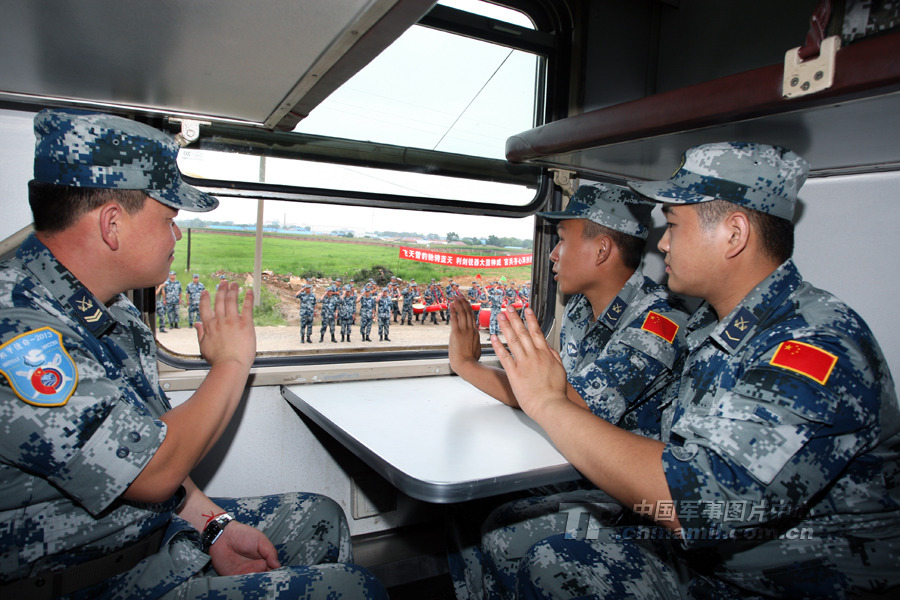 登上专列向战友们告别。 曹占礼 摄