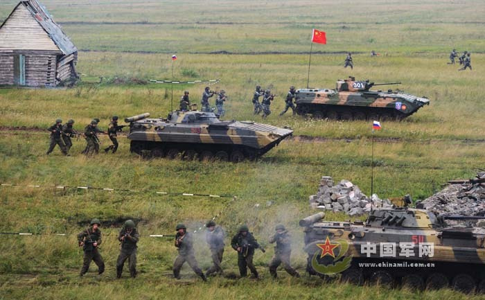 中俄举行实兵合练 解放军96A坦克编队进攻