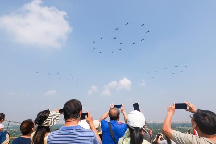 (抗战胜利80周年)纪念中国人民抗日战争暨世界反法西斯战争胜利80周年大会在京举行 民众关注空中梯队