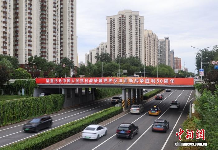 纪念抗战胜利80周年主题标语悬挂北京街头