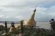 缅甸连日暴雨 佛塔竟完全沉入河中