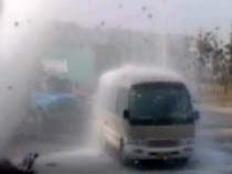 水管被撞当街喷射 小汽车扎堆洗澡发生追尾