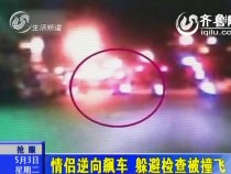 实拍:情侣逆向飙车 为躲避检查被撞飞