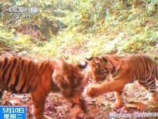 印尼首次在野外拍摄到罕见苏门答腊虎群
