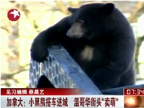 小黑熊搭车进城 温哥华街头“卖萌”