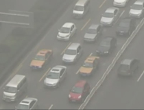 【解说词】记者上午8点在现场看到,20余辆贴着“福”字的大巴整齐的停靠在出发点,车上坐着的全是湖北省内在汉的农民工,他们每人一份的手提袋里放着一张免费的爱心车票、一份年货、一套书以及一份平安人生意外险。爱心大巴将载着这些辛劳一年的农民工们奔赴他们的家乡与家人团圆。