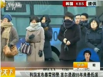 韩国发布暴雪预警 首尔遭遇55年来最低温