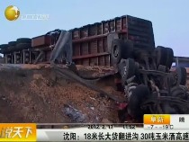 18米长大货车侧翻进沟 30吨玉米铺满高速