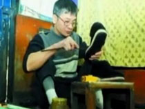 残疾男子近10年做近400双鞋送人报恩