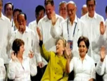 希拉里出席G20会议独穿黄绿色上衣遭质疑