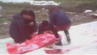 男子发现鸭子被冻湖面 跳湖破冰救援