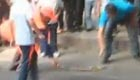 醉汉街头耍疯 咬民警要撞车