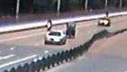 实拍大桥护栏如"多米诺骨牌"倒下