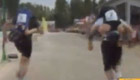 实拍:男子公路耍酷 站着骑摩托车