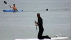 美成群大白鲨现身浅水区紧跟游客