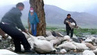 男子发现鸭子被冻湖面 跳湖破冰救援