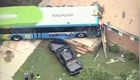 美国一辆公交车冲进民宅