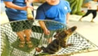 男子发现鸭子被冻湖面 跳湖破冰救援