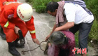 男子发现鸭子被冻湖面 跳湖破冰救援
