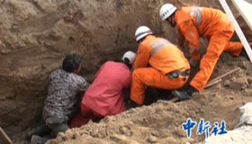 阜康工地坍塌 消防人员刨出活埋者