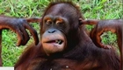 红毛猩猩嫌吵闹用手指堵住耳朵