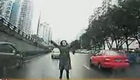 实拍疯狂女子突然冲进车流拦车撒泼