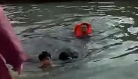 男子发现鸭子被冻湖面 跳湖破冰救援