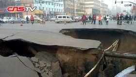拍客:太原路面再次塌陷