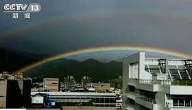 实拍:台湾现超大彩虹奇景 横跨两市