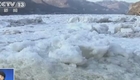 男子发现鸭子被冻湖面 跳湖破冰救援
