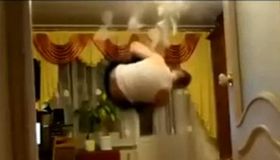 拍客:傻缺男客厅练空翻踢碎吊灯