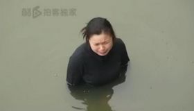 男子发现鸭子被冻湖面 跳湖破冰救援