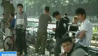 城管执法老板娘倒地 老板怒围执法车