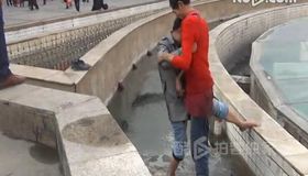 男子发现鸭子被冻湖面 跳湖破冰救援