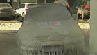 长春桥下一轿车被冻成“冰雕”